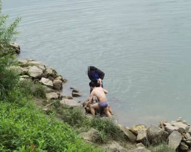 “一跳下去,脚踩不到底。”邝程斌回忆,游出去后,水深已有两三米。他奋力挥臂,往落水女子的方向游。很快,他靠近了落水女子,用右手从身后将女子托起,让她头部露出水面呼吸,然后拖带着女子往岸边游。