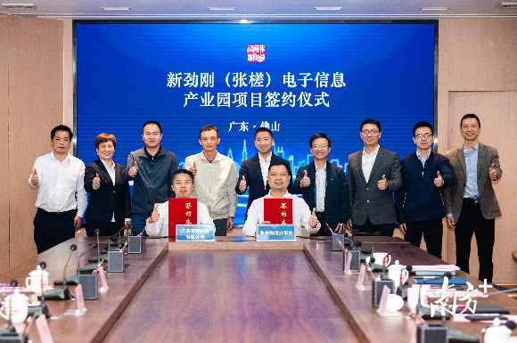 2024年1月16日,宽普科技与张槎街道办事处签订了《新劲刚(张槎)电子信息产业园项目合作协议》,于2025年3月14日竞得海口智能科技园3.5万平方米用地。图为宽普科技与张槎街道办事处签约。/南方+供图