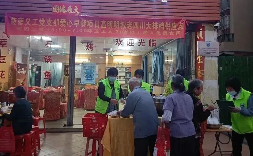 蒸腾的热气裹着食物的香气,驱散了冬夜的寒凉,也唤醒了这座城市最动人的清晨——这里是菠萝义工每周二免费爱心早餐的固定派发点,而这场持续数年的温暖之约,离不开高明好人何晓花的坚守与热忱。
