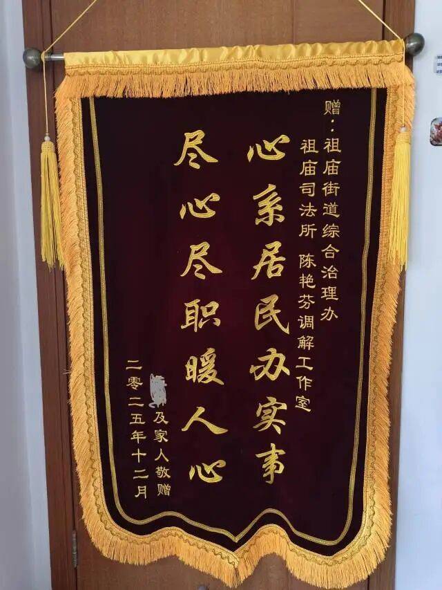 近日,一面从四川跨越千里寄来的锦旗和一封感谢信,送达了佛山市禅城区祖庙司法所。锦旗上“心系居民办实事,尽心尽职暖人心”的金色大字,是祖庙街道坚持和发展新时代“枫桥经验”,创新推行“访调援法”一机制一平台成效的生动体现。