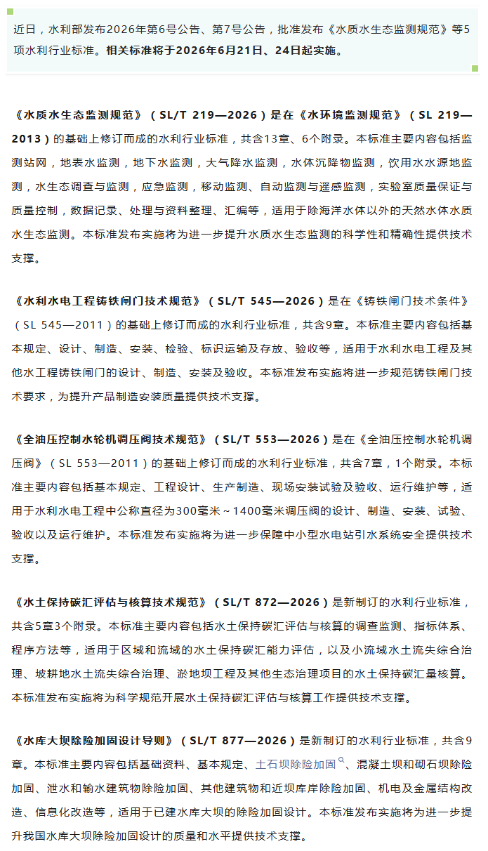 6月21日、24日起实施!水利部发布5项水利行业标准