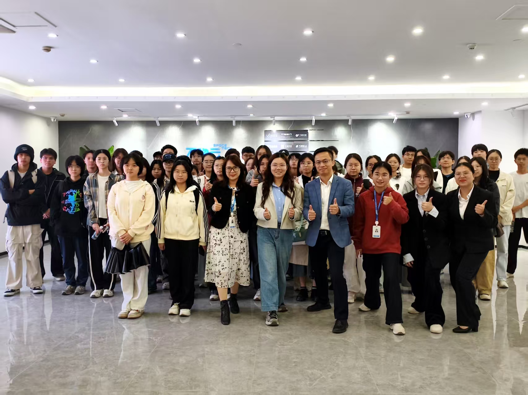 紧接着,公司讲解员姚雨婷带领大家参观了公司办公区域与文化长廊,深入体会企业历史与文化积淀。万物云始终坚守“为客户做好服务”的初心,聚焦社区、商企、城市三大空间,首创“共管模式”,持续迭代“睿服务”体系,以科技赋能提质增效。公司曾十次蝉联物业百强榜首,营收突破百亿,荣获《哈佛商业评论》卓越管理奖,并入选生活服务业连锁百强,成为行业标杆。这一段历程与成就,令在场师生心生敬意与向往。