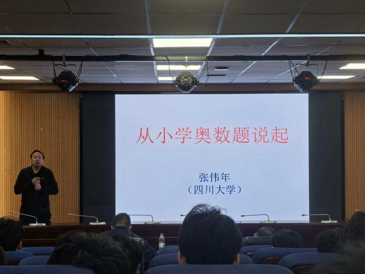 张伟年教授以“从小学奥数题说起”为题,呈现了一场兼具趣味性与启发性的学术分享。讲座伊始,张教授从几道经典小学奥数题切入,通过拆解解题思路,挖掘其中蕴含的数学思维与方法,逐步将话题延伸至微分方程与动力系统的前沿研究领域。