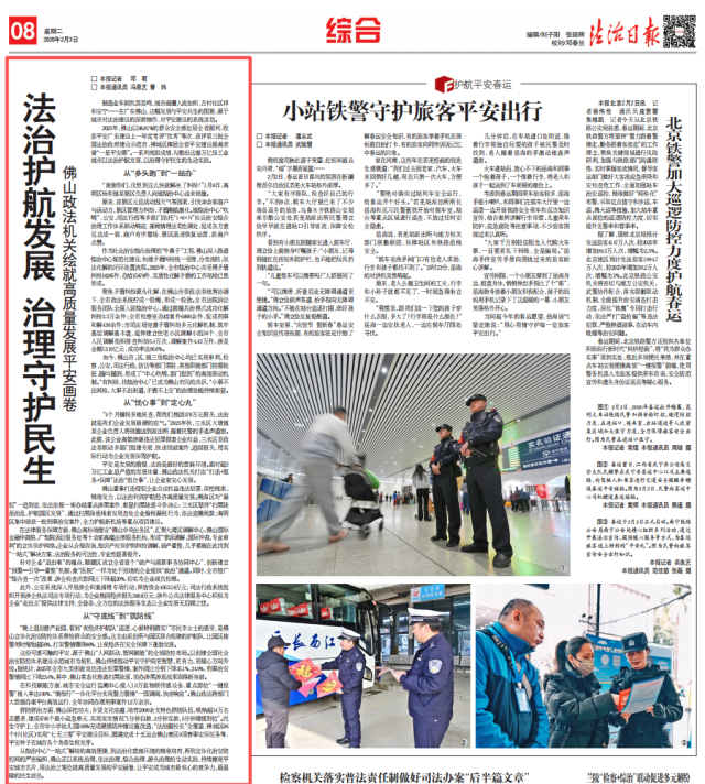 2025年,佛山以98.81%的群众安全感位居全省前列,收获平安广东建设上一年度考评“优秀”等次,获评第三批全国法治政府建设示范市,禅城区捧回全省平安建设最高荣誉“一星平安鼎”。一系列亮眼成绩,勾勒出这座万亿级工业城市以法治护航发展、以治理守护民生的生动实践。
