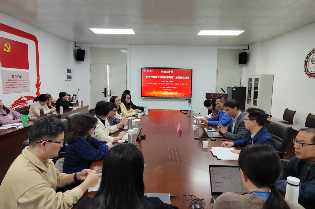 2025年12月24日下午,马克思主义学院“明德大讲堂”正式开讲。本次讲座特邀中山大学马克思主义学院院长沈成飞作首场嘉宾。会议由院长林瑞青主持,学院骨干教师、研究生等30余人参加。 沈成飞教授以宏阔的历史视野和严谨的理论逻辑,作了题为“中国共产党历史性解决贫困问题的历史性论证”的学术报告。报告结构清晰、论证严密,围绕五个维度层层展开系统论述:贫困问题的历史困境与文明演进、马克思主义对解决绝对贫困问题的理论指引、中国共产党解决绝对贫困问题的实践历程、中国特色社会主义制度在减贫中的优势,以及中国减贫事业的全球意义与价值。整场报告思想深刻、内容丰富,既有理论高度,又有历史厚度,更有现实温度,引发了在场师生的强烈共鸣与深刻思考。 “明德大讲堂”是由马克思主义学院倾力打造的高水平学术平台。大讲堂将持续邀请国内外知名专家学者,围绕中国特色社会主义、中华优秀传统文化、国内外形势与政策等领域的重大理论和现实问题展开学术研讨,旨在营造浓厚的学术氛围,提升师生的人文素养与思辨能力,创建人文社科类高端学术品牌。