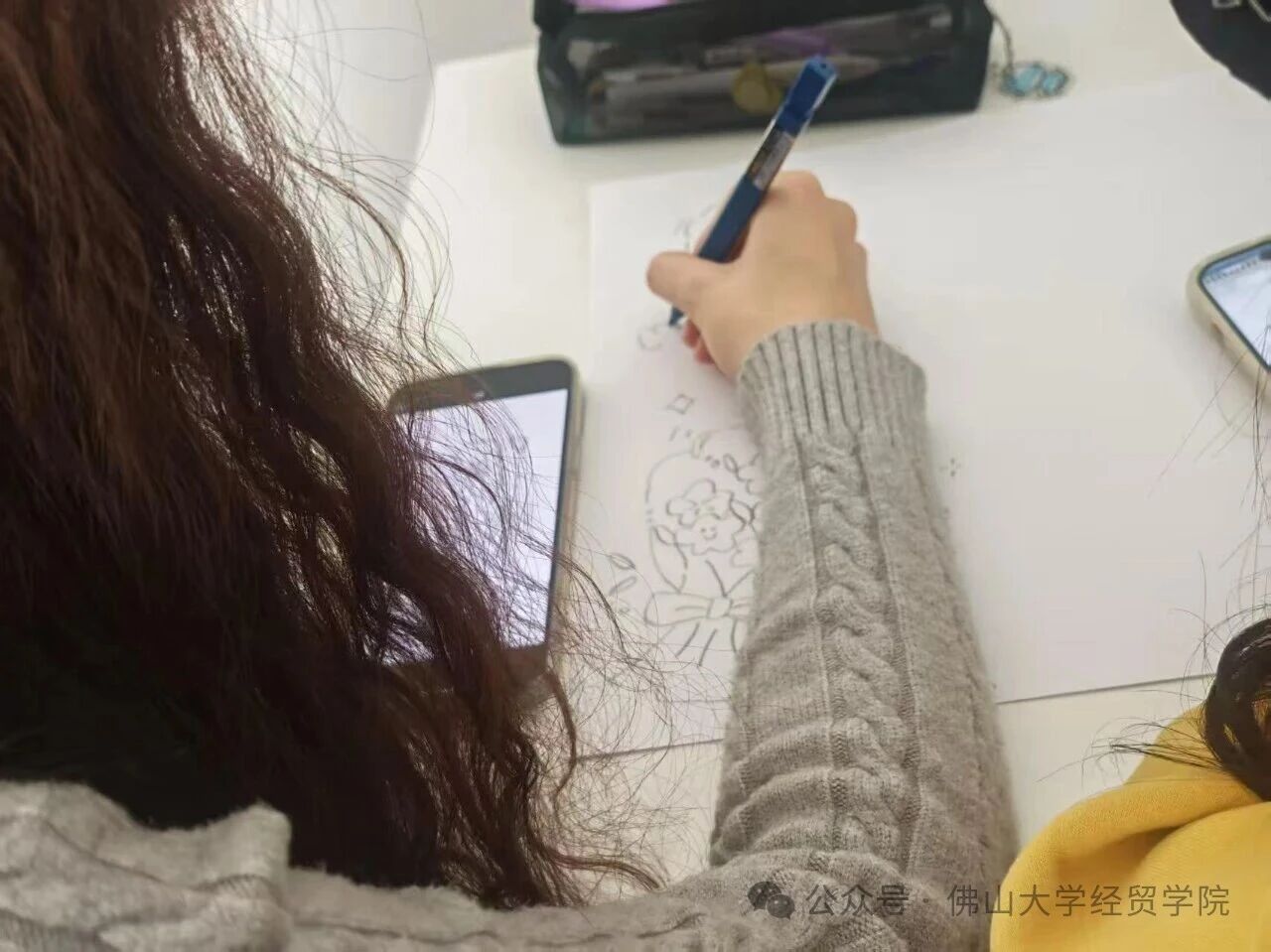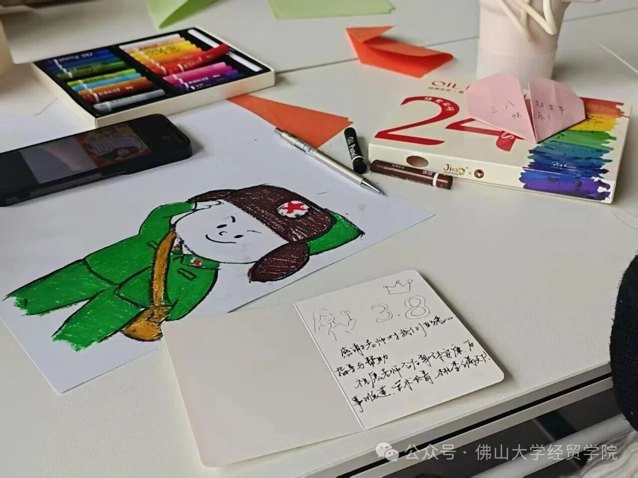 与此同时,在手抄报创作区,同学们正以笔墨致敬巾帼风采,精心设计版式,以图文并茂的形式讲述身边女性榜样的事迹和弘扬雷锋精神;色彩与线条交织中,既有对师恩的感念,也有对母爱的歌颂,更有对在各行各业发光发热的女性力量的礼赞。每一笔勾勒,每一声书写,都凝聚着同学们真诚的敬意与温暖的祝福。