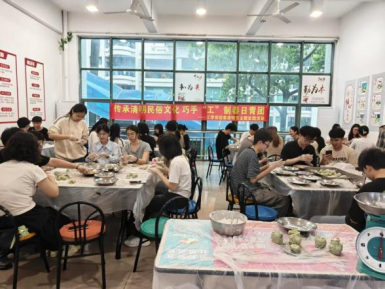 “清韵寄春,团暖校园”青团手作活动则聚焦于非物质文化遗产的当代传承。在熹园二楼,40余名来自各学院的学生在工作人员的指导下,学习从揉粉、包馅到塑形的青团制作全工序。活动不仅安排了制作教学,还穿插了“最美青团”随手拍、创意造型比拼等趣味环节。现场气氛温馨热烈,艾草的清香与豆沙的甜润交织弥漫。"以前清明只知道吃青团,今天自己动手才知道这门手艺的巧妙。捏着青团,好像一下子触摸到了传承千年的春天。"2025级集成电路设计与集成系统专业的陈语涵同学分享道。活动将传统民俗从认知带入实践,在亲手劳作中深化文化认同。