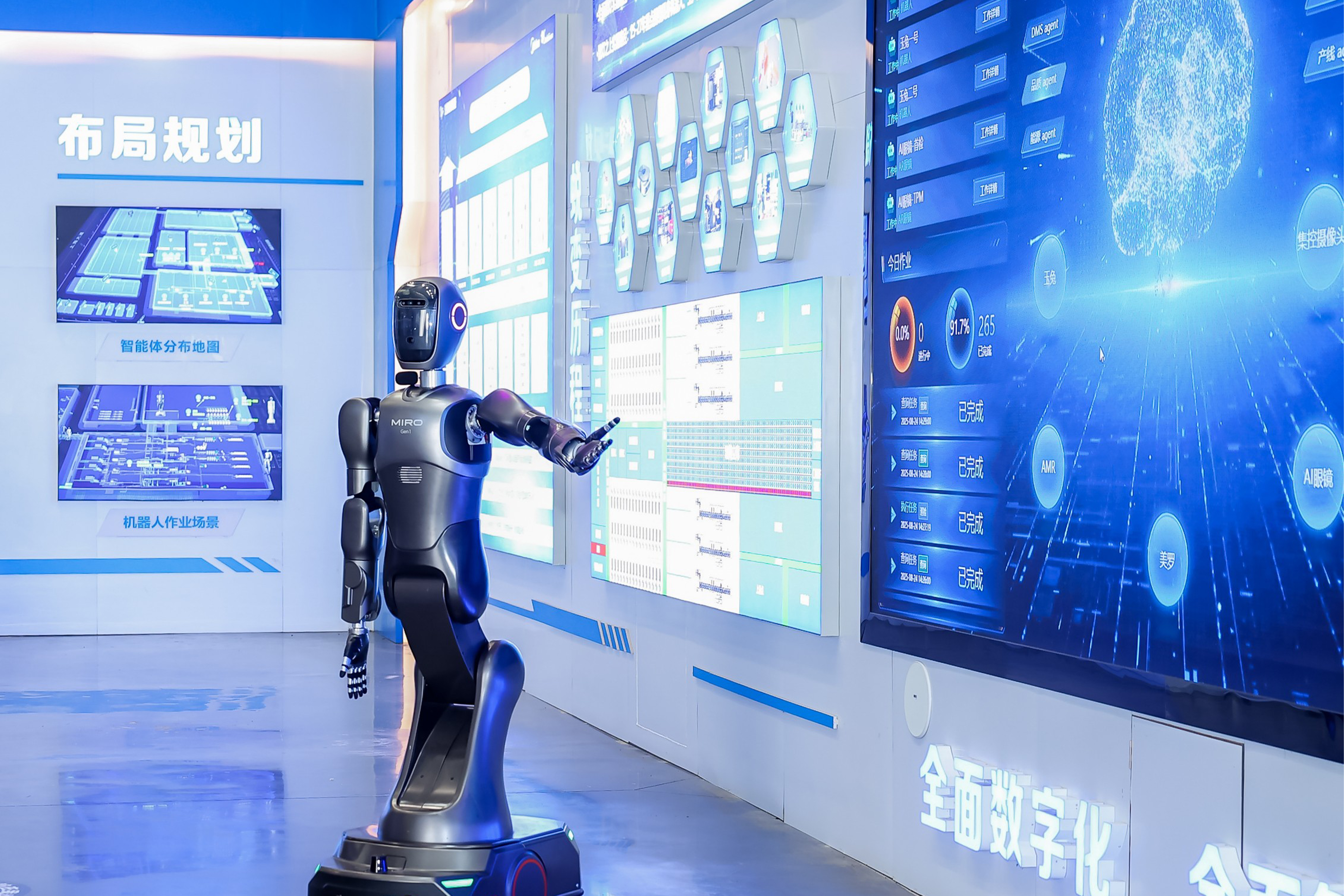 这里已从荣获认证的“灯塔工厂”,进化为更进一步的“智能体工厂”。核心变化在于,以往多个独立的智能应用(智能体)——如产线自动化、AI检测、智能立体库和智能物流技术——如今被一个统一的“工厂大脑”所串联和指挥。