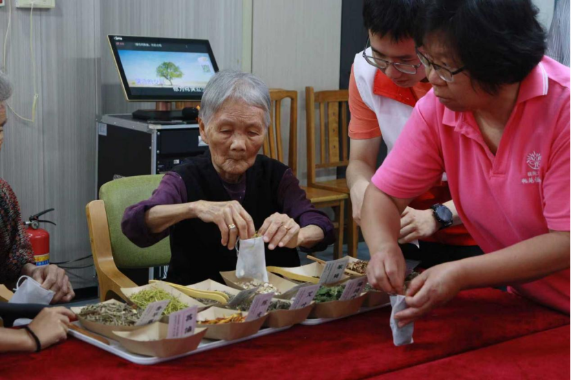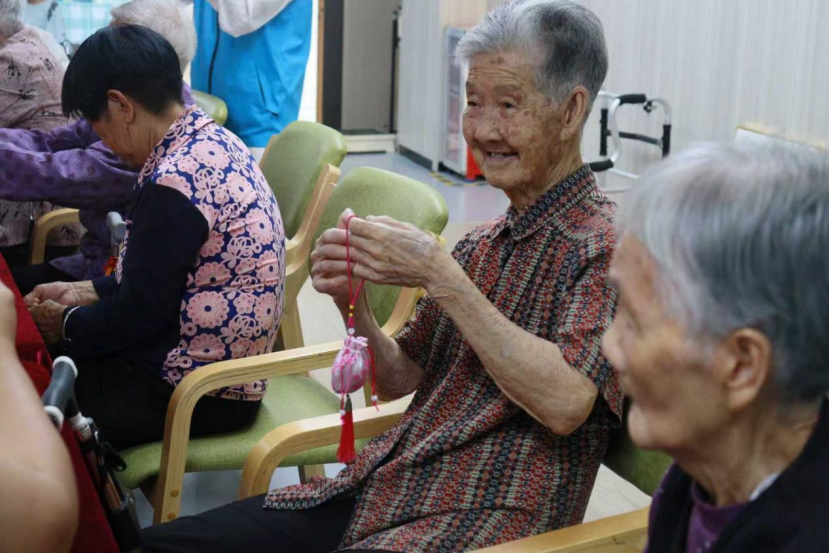 随后,志愿者们与老人们一对一结对,共同开展香囊制作活动。志愿者手把手指导老人穿针引线、装填香料,耐心讲解香囊的文化寓意;老人们兴致勃勃、积极参与,在罗忍章老师和工学部团委全体志愿者的贴心陪伴下,亲手制作出一个个造型别致、香气馥郁的香囊,现场欢声笑语不断,暖意萦绕在每一个角落。