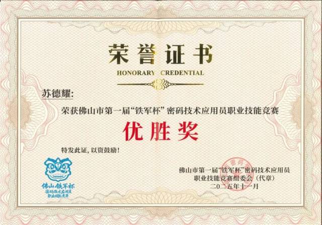 本届“铁军杯”竞赛,是佛山在密码领域首次举办的市级一类职业技能赛事,规格高、意义深远。赛事由佛山市密码管理局、佛山市互联网信息办公室、佛山市政务服务和数据管理局等五部门联合主办。赛事旨在为 “再造一个新佛山” 的宏伟蓝图注入澎湃的数字安全人才动能,是佛山“敢饮头啖汤”改革精神在数字安全领域的又一次生动实践。