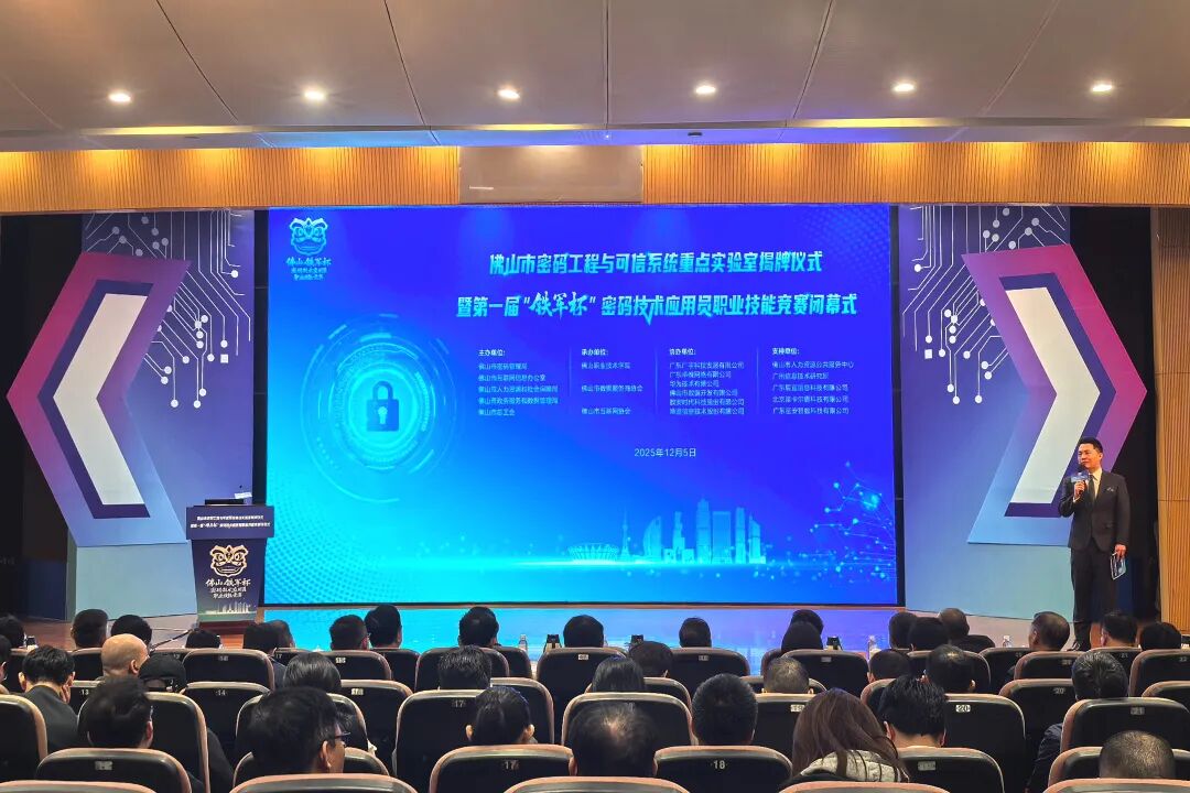 12月5日,佛山市密码工程与可信系统重点实验室揭牌仪式暨第一届“铁军杯”密码技术应用员职业技能竞赛圆满落幕。来自广宇科技云网安团队的刘金琳与苏德耀,从全市200多名参赛者中脱颖而出,取得位列前34名的优异成绩,展现了科创型国有企业扎实的技术底蕴与助力佛山密码人才梯队建设的坚实担当。