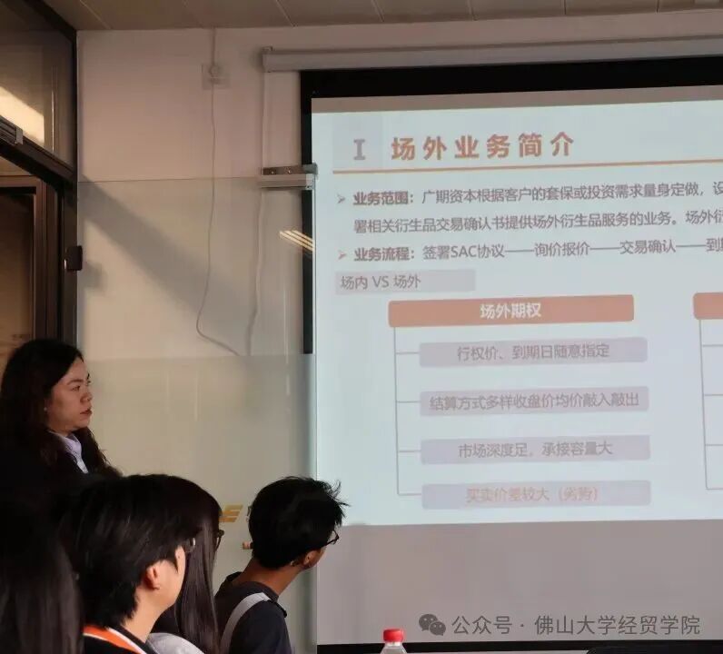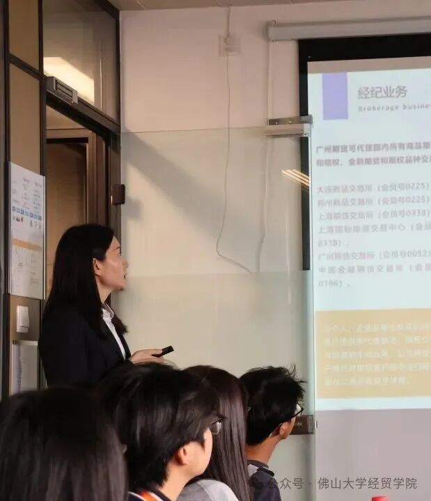 下午三点,师生一行人抵达本次研学的第二站——广州期货佛山分公司。作为2003年成立的国有控股期货公司,其总部位于广州,注册资本达16.5亿元人民币;在此,师生们与企业代表围绕金融实践话题展开了深入交流。