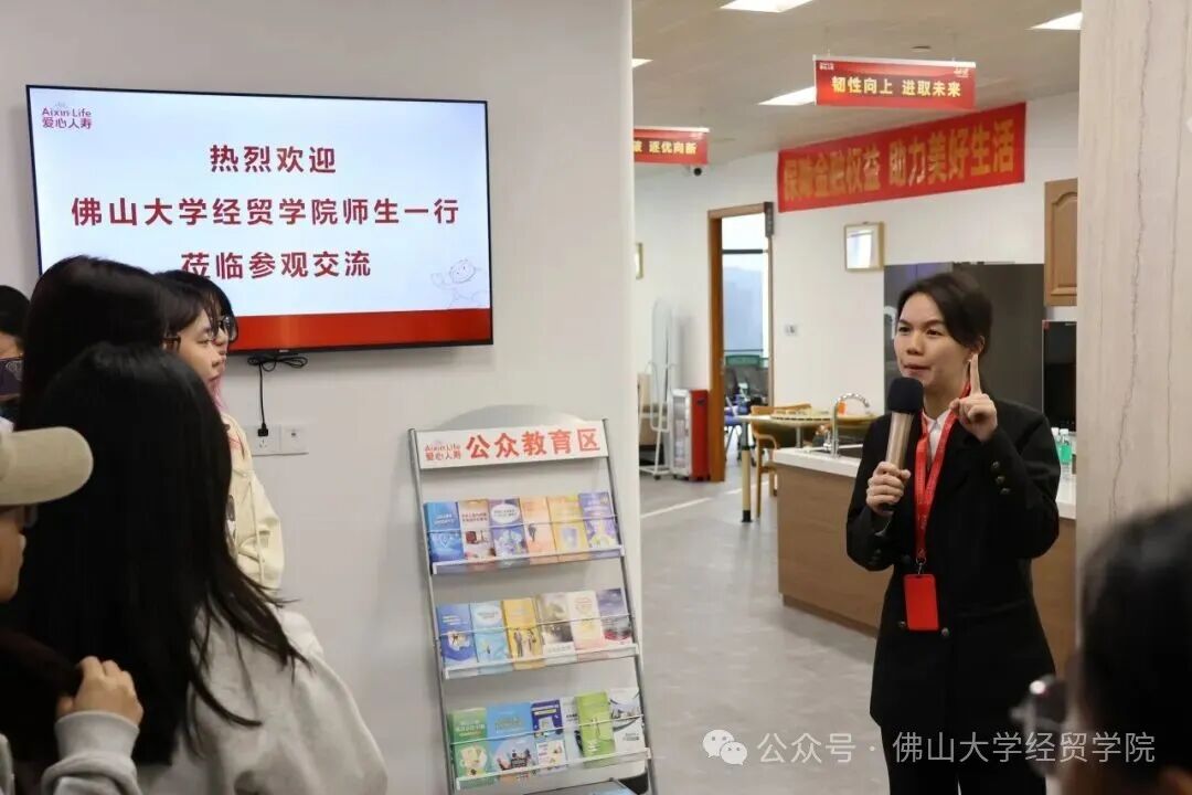 2025年12月3日下午,在佛山大学经济贸易学院牛静敏老师的带队下,2024级金融学专业的同学们走访了中信证券、广州期货与爱心人寿三家企业。 活动中,同学们积极参与企业宣讲与座谈,并在企业相关人员的引导下,参观了工作环境与企业文化展示。同学们纷纷表示收获颇丰,受益匪浅。