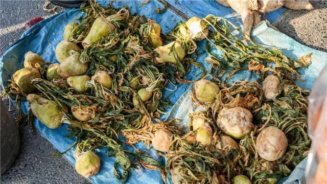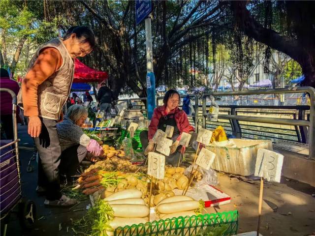 “买点大头菜蒸五花肉,淋点酱油,很香的!”一位阿叔边挑边传授私家食谱。
