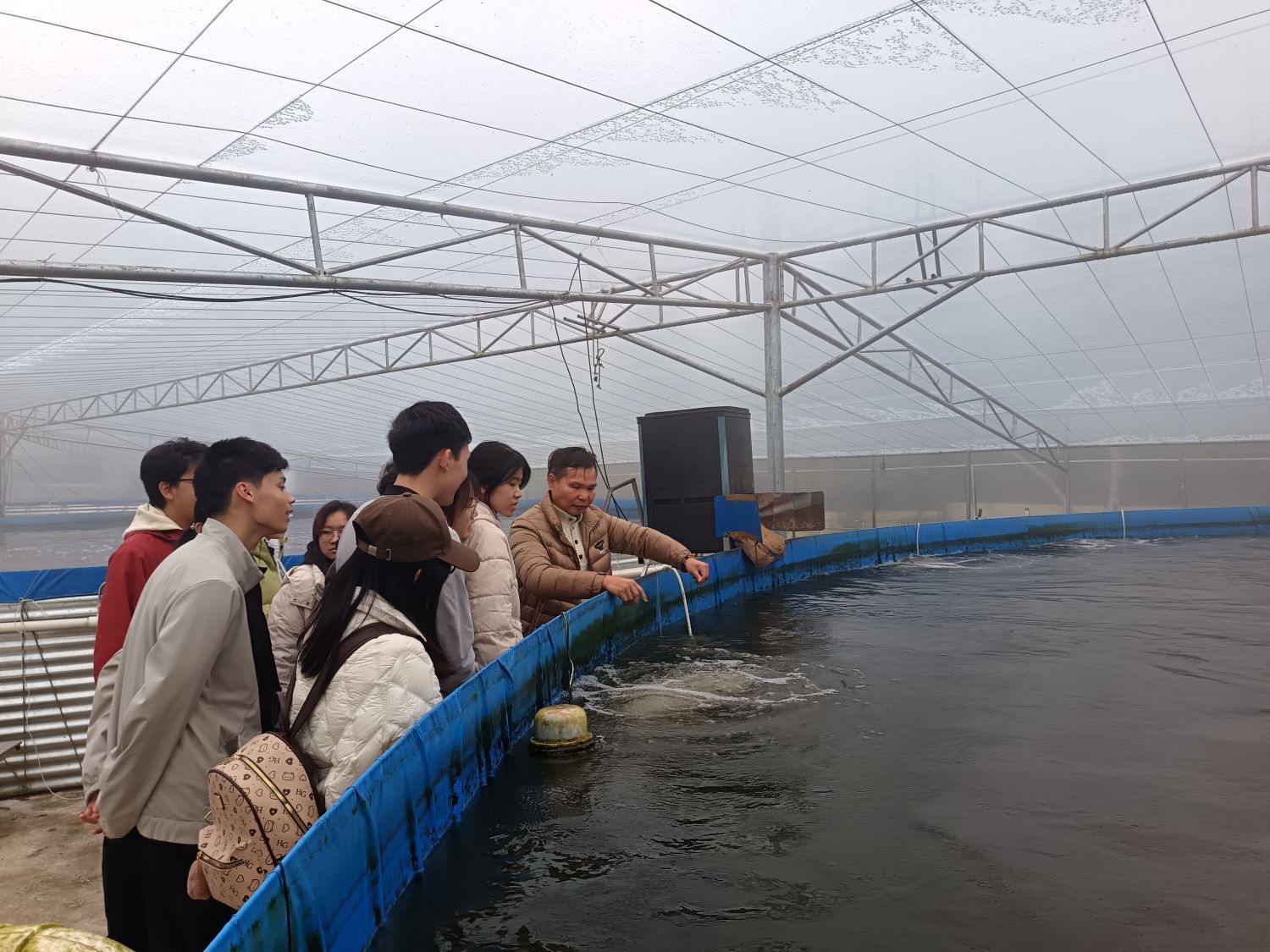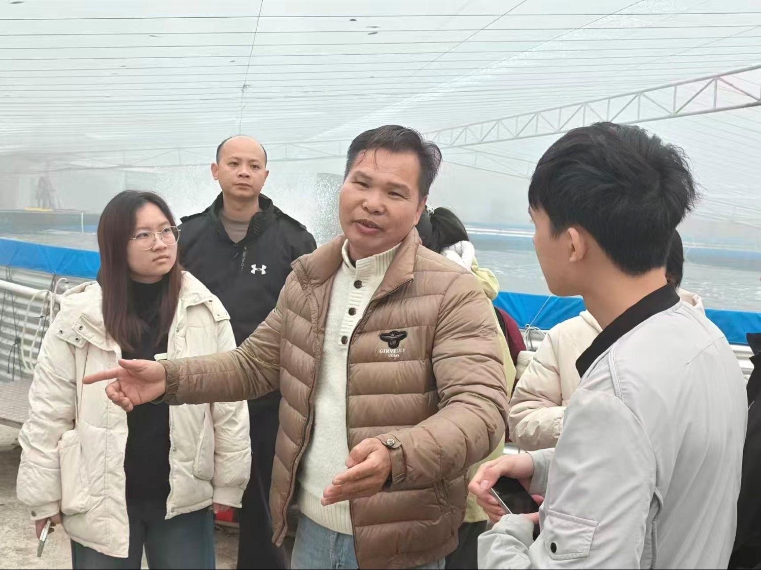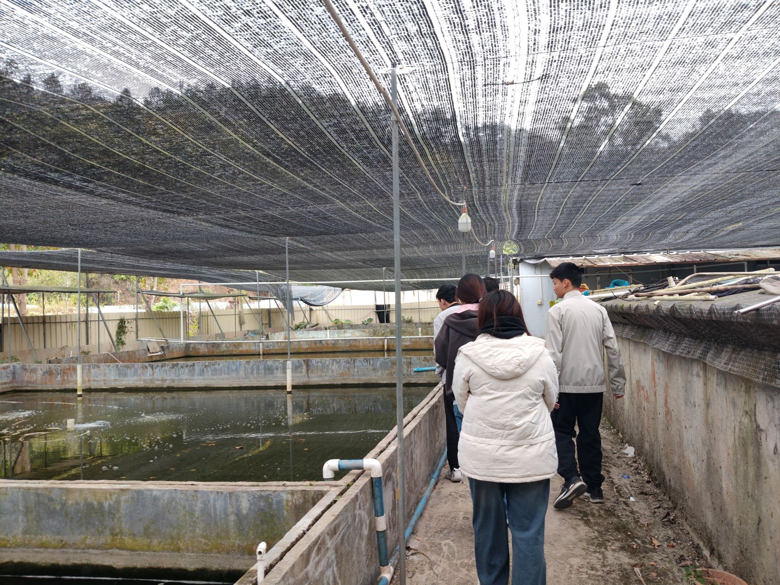 次日清晨,实践团成员在村书记的带领下,前往河头镇特色鱼塘开展实践活动。在鱼塘负责人引导下,实践团先后参观了两大核心养殖区域:特种脆肉罗非塘配备全自动投饵设备与恒温大棚,水温、溶氧量等指标由智能系统精准调控;经济塘则养殖锦鲤等观赏鱼,兼具生态与经济效益,拓宽了鱼塘营收渠道。