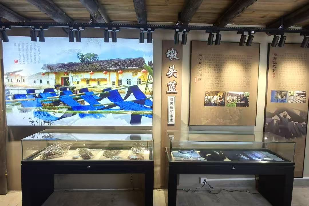 在水背村,村两委邀请实践团参观了正在建设中的研学馆。馆内不仅设有阳明文化专题展陈,还集中展示了多项本地非遗:源自明代的“阳明纸”制作技艺、承载客家人生活印记的“墩头蓝”布艺、活泼灵动的凳板龙舞具、威灵可爱的猫头狮面具、婉转悠扬的采茶戏服饰……每一件展品都诉说着这方水土的文化记忆。“我们想把非遗和研学课程结合起来,让孩子们来村里不仅能看,还能动手体验。”研学馆负责人告诉队员们,“比如让游客自己造纸、织布,这样文化才能真正传下去。”这种“让传统进入生活”的思路给了实践团新的启发——文化保护不是将事物凝固于过去,而是找到它们与当代的连接点。队员们就如何将非遗元素融入研学课程设计、如何开发体验式文旅产品等问题与负责人展开探讨。