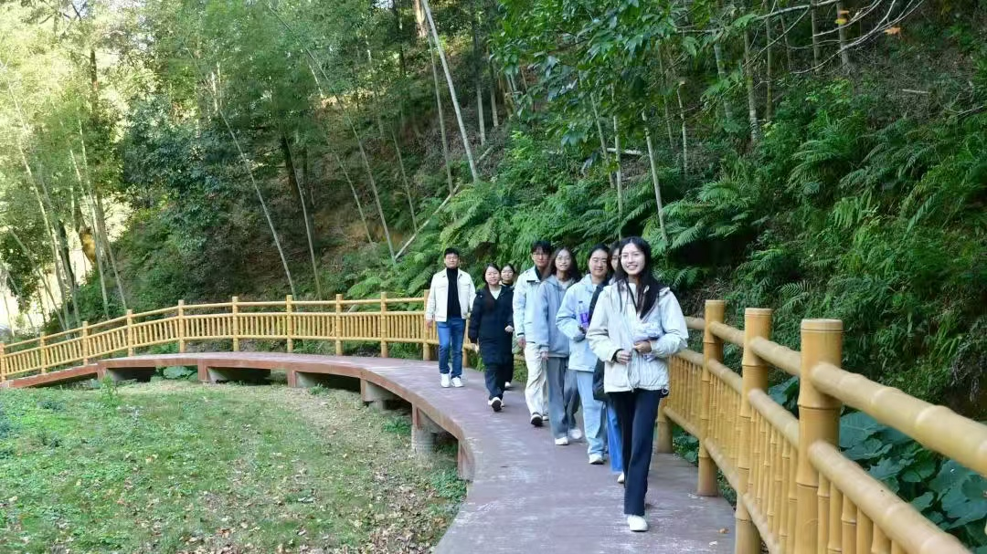 返程途中,队员们拍摄植被照片、记录步道数据,围绕“竹产业升级”展开热烈讨论。回到住处后,团队连夜整理调研资料,撰写初步调研报告,并着手设计研学课程方案。“这次返乡不是简单的故地重游,而是一次带着专业视角的重新发现。”实践团队长表示,“我们想用自己的所学,为家乡做点实事。”团队成员对这片土地有着天然的亲近感。在他们看来,“返家乡”实践的意义在于:用青年的眼睛重新发现家乡,用专业的知识反哺乡土。