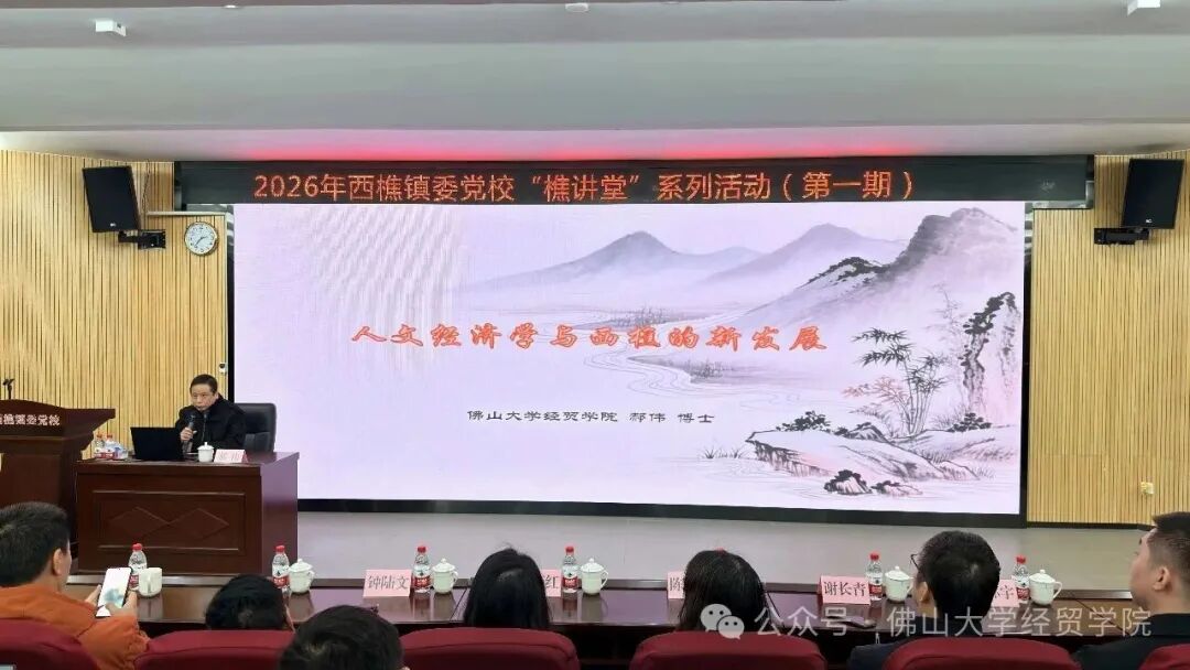 2026年1月21日下午,西樵镇委党校“樵讲堂”新年第一期活动顺利举办。经济贸易学院郝伟博士受邀担任主讲嘉宾,围绕《人文经济学与西樵的新发展》开展专题授课。西樵镇各部门干部及党员代表参加学习。