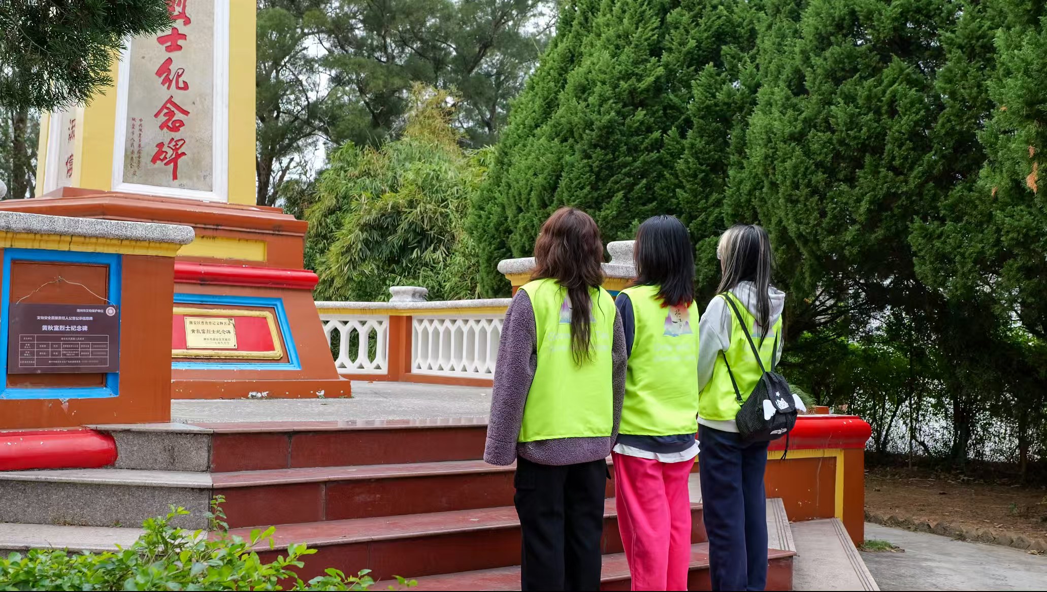在牌坊街的古今对话中汲取灵感后,实践团带着“红色资源如何赋能当代乡村”的思考,首站便深入凤凰山,探访红色地标。在凤凰山革命纪念展馆,历史的画卷缓缓展开。同学们肃立于黄秋富烈士纪念碑前,追思先烈,那一个个曾为今日幸福生活流血牺牲的名字,从此不再遥远。走进畲族文化馆,缤纷的节日盛装、精巧的竹编木雕,诉说着少数民族文化如何在时光中生生不息。这一刻,红色精神的赓续与多彩民俗的传承奇妙交织,让队员们深切体悟到,红色基因正以鲜活的方式,在当代乡村的肌理中持续脉动。