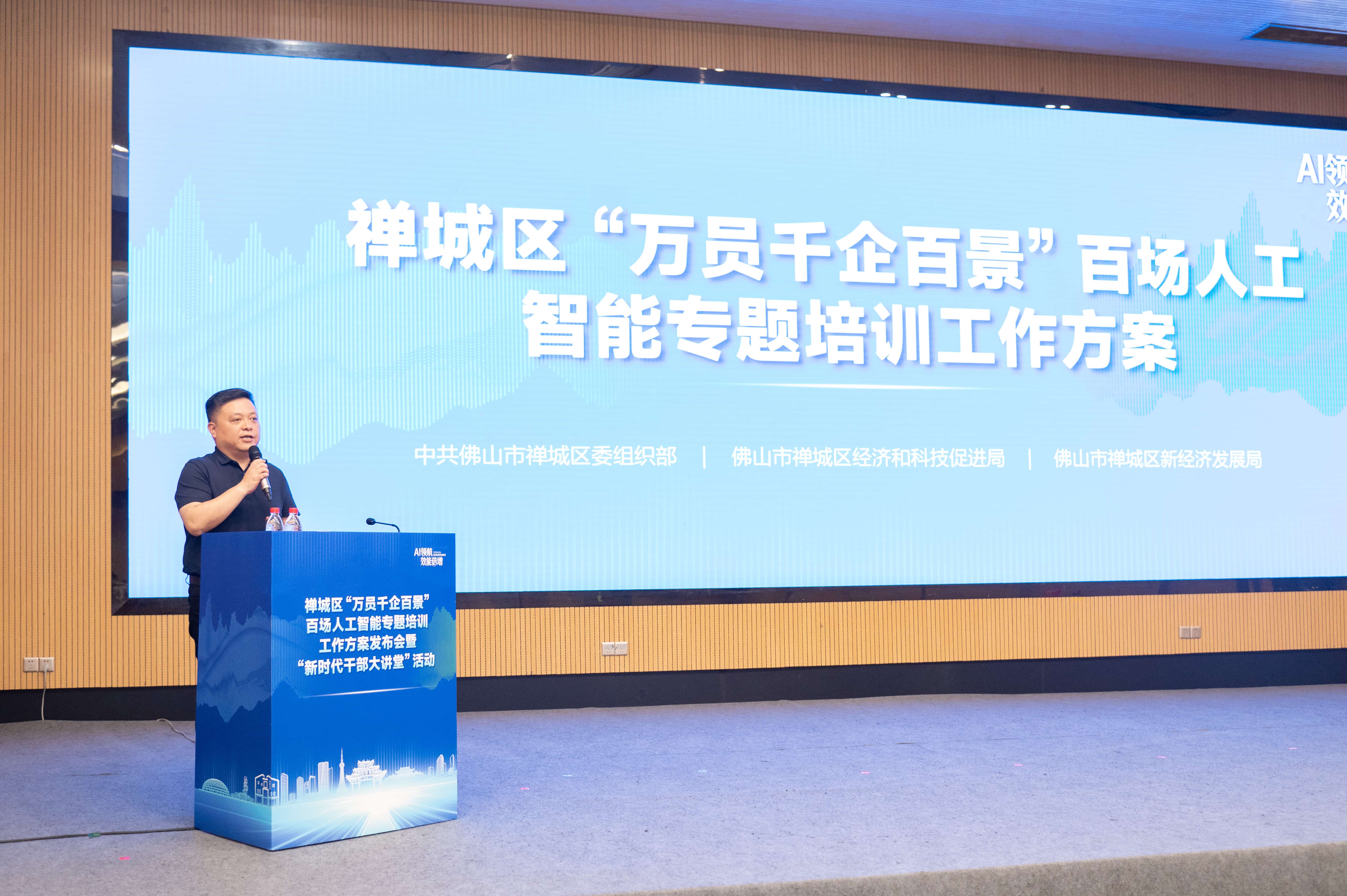 春潮涌动,智启新程。4月7日,禅城区举行“万员千企百景”百场人工智能专题培训工作方案发布会暨“新时代干部大讲堂”活动。这不仅是一场关于人工智能(AI)的思想碰撞与学习会,更是禅城向“AI要新质生产力”发出的嘹亮号角。区委书记盘石等领导嘉宾出席本次活动,