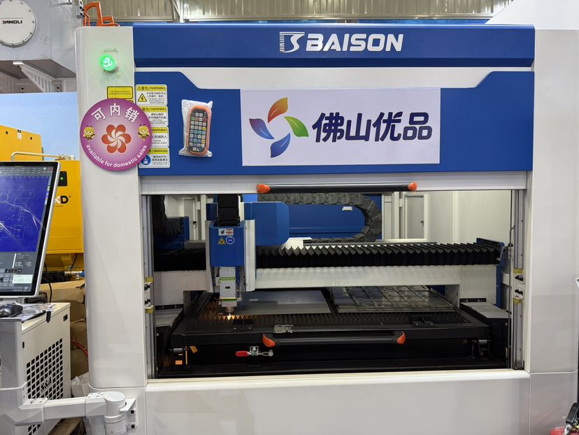 汇百盛激光设备公司的展位上,一台M13型带包围单平台平板切割机正在演示。公司外贸经理区文韬介绍,这台设备的特点是带包围防辐射、占地小、操作便捷,可选配除尘器,减少废气排放,精准符合欧洲严格的环保与安全标准。