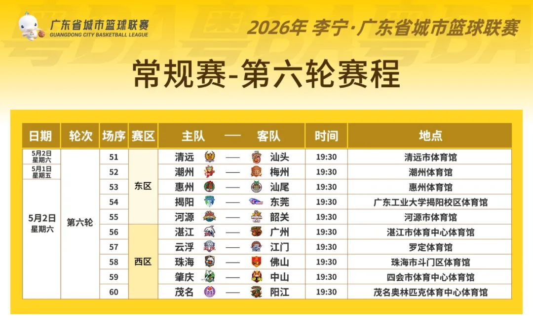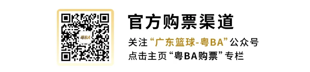 常规赛第六轮购票时间安排出炉,观赛预约通道于4月28日上午10:00开启,4月29日22:00截止。想前往现场观赛的球迷可以关注“广东篮球-粤BA”公众号,点击主页“粤BA购票”专栏,进入票务系统,选择场次提交报名预约。
