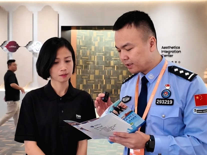 “展会革新到哪里,边检服务就跟进到哪里!”针对本届陶博会的国际化升级,佛山边检站民警不仅立足展位宣传政策,而且更进一步融入会展服务,民警戴上“工作证”,在会展各处进行“外语引导服务”;针对港澳台居民查询出入境记录的高频需求,新推“出入境记录查询指引”服务,“卓粤·边检”展位服务更多元;围绕当前佛山陶瓷行业海外业务板块,上门了解参展企业外贸变化及政策需求,广泛收集意见建议,协调解决参展企业关心关注的难点问题。