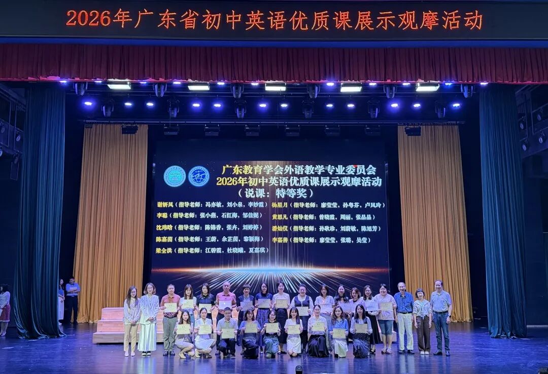 日前,2026年广东省初中英语优质课展示观摩活动在惠州落幕。来自全省各市的22名顶尖初中英语教师同台竞技。大良街道梁开初级中学教师梁全洪代表佛山出征,一举斩获说课特等奖,并夺得现场授课环节第一名,以双项特等奖惊艳全省,为佛山教育争光,为顺德教育再添高光时刻!
